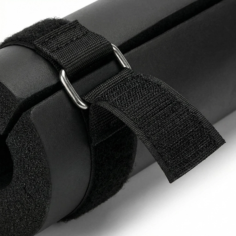Durchgehender Klettverschluss ermöglicht das schnelle Anbringen an jeder Standardstange. Sei in Sekunden bereit für Kniebeugen oder Ausfallschritte – ganz ohne Aufwand.