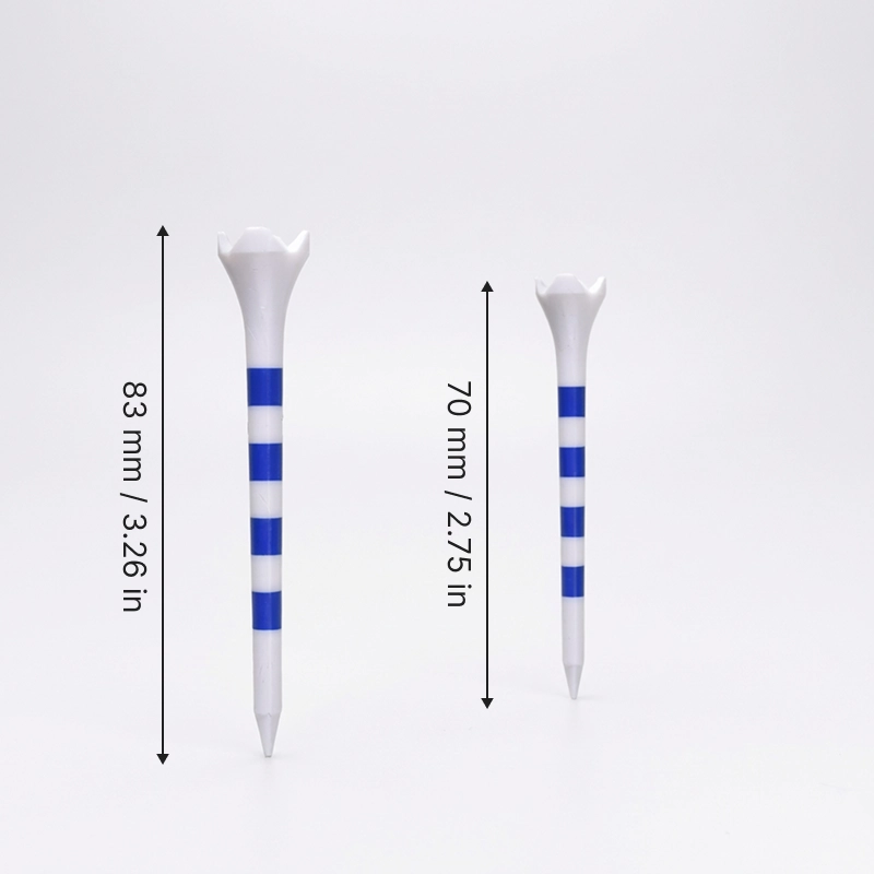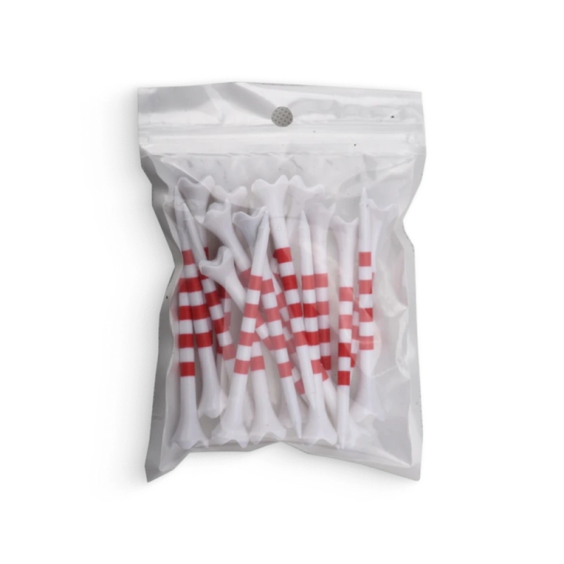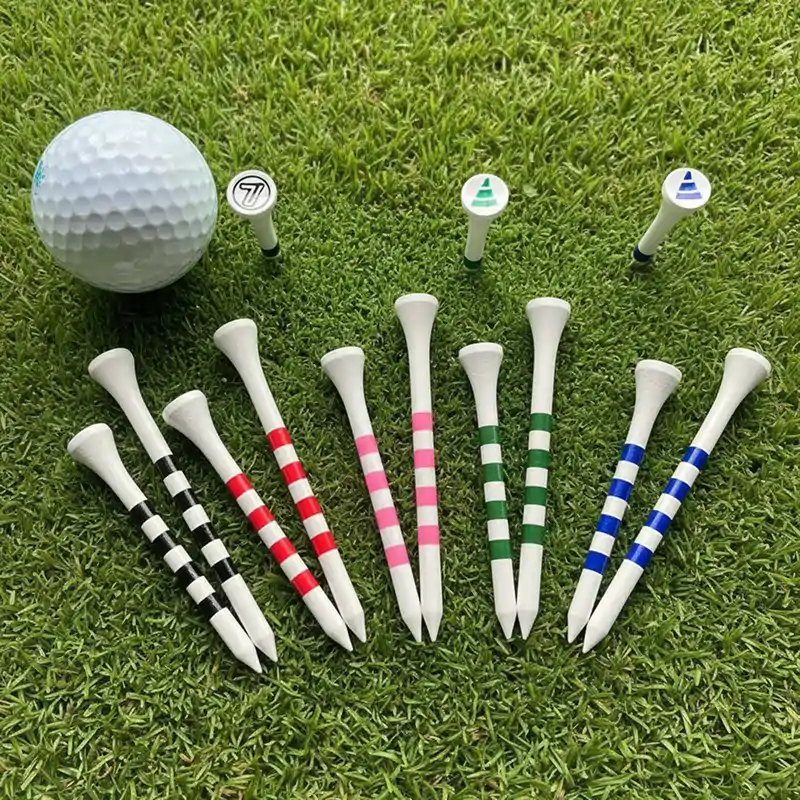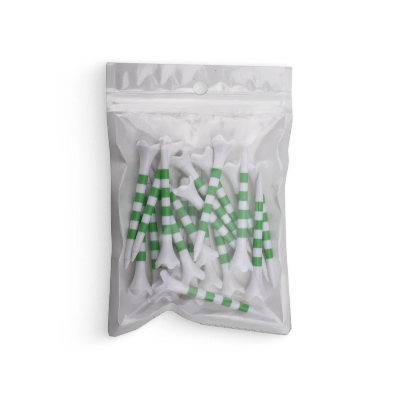 Diese farbenfrohen Tees machen meine Wochenendrunden viel unterhaltsamer. Die Streifen helfen mir, jedes Mal dieselbe Höhe einzustellen, und ich erkenne sie sofort im Gras.
