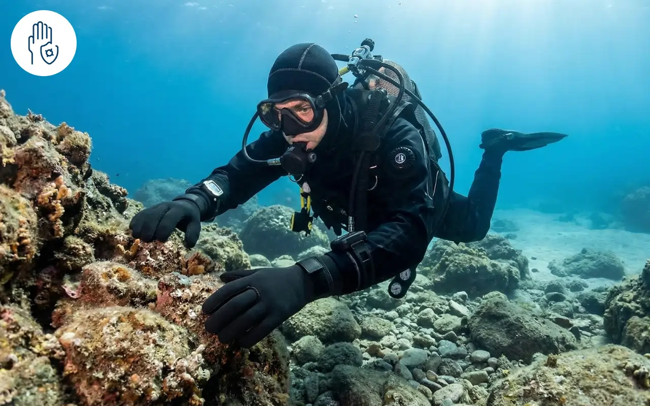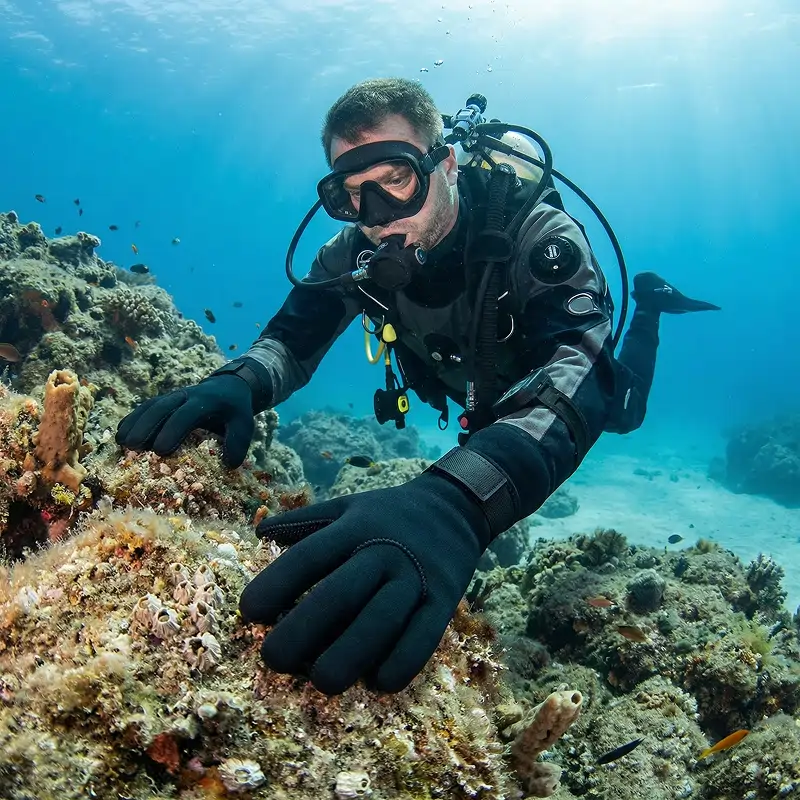 Hände bleiben sicher vor Felsen, Korallen oder Meerestieren. Robustes Neopren hilft jedes Mal, Schnitte oder Stiche zu verhindern.