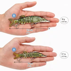 Acht flexible Abschnitte lassen diesen Köder wie echte Beute schwimmen. Jeder Zupfer reizt Raubfische und steigert Ihre Fangquote.