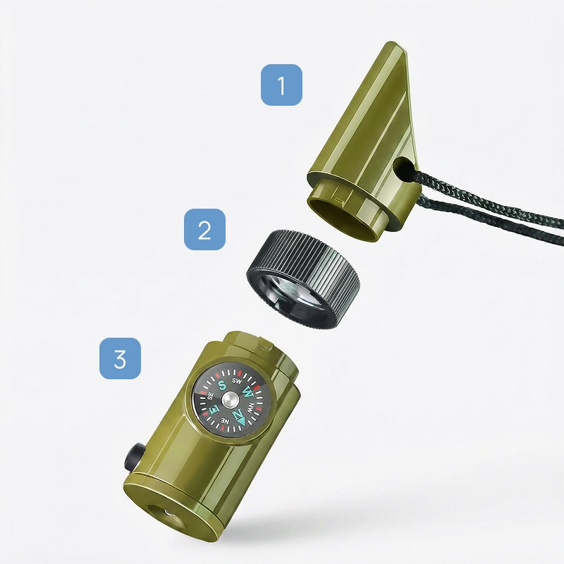 Ein lautes Signal, eine helle Taschenlampe und ein praktischer Spiegel sorgen schnell für Aufmerksamkeit. Bewahren Sie kleine wichtige Dinge sicher auf, jederzeit griffbereit, wenn Sie sie brauchen.