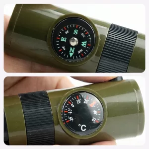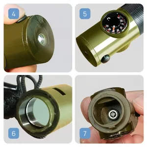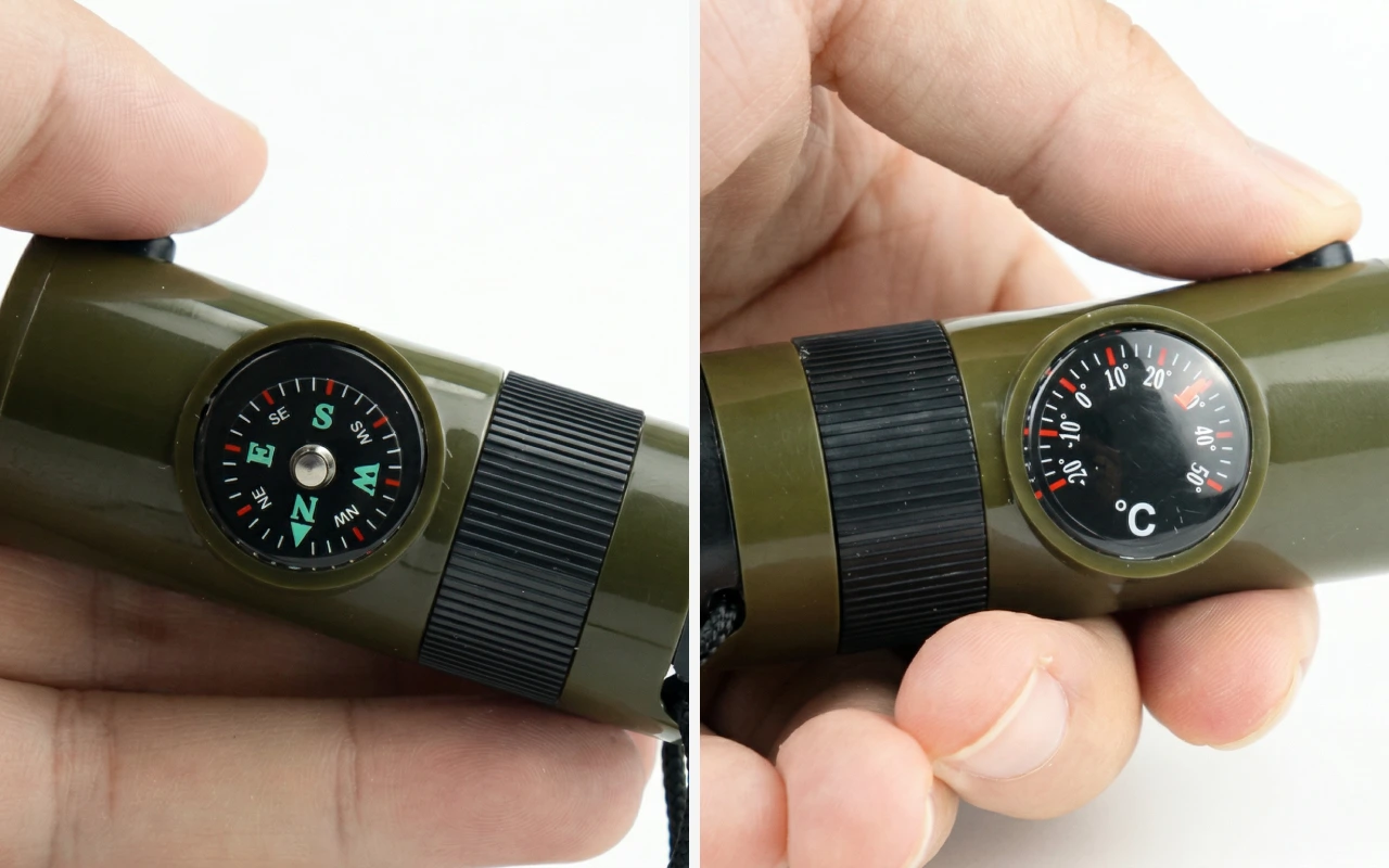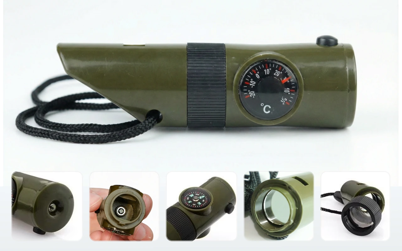 Habe die Survival-Pfeife für Solo-Campingtrips gekauft. Finde es super, Thermometer, kleines Fach und Licht zusammen zu haben, damit ich nicht in meinem Rucksack wühlen muss.