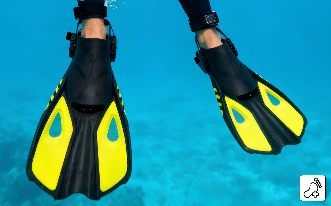 Weiche Gummitaschen unterstützen jede Fußform sanft. Nie wieder schmerzende Zehen oder Reibungen nach dem Schwimmen.