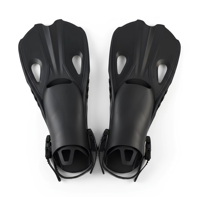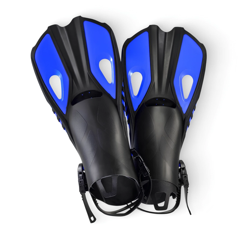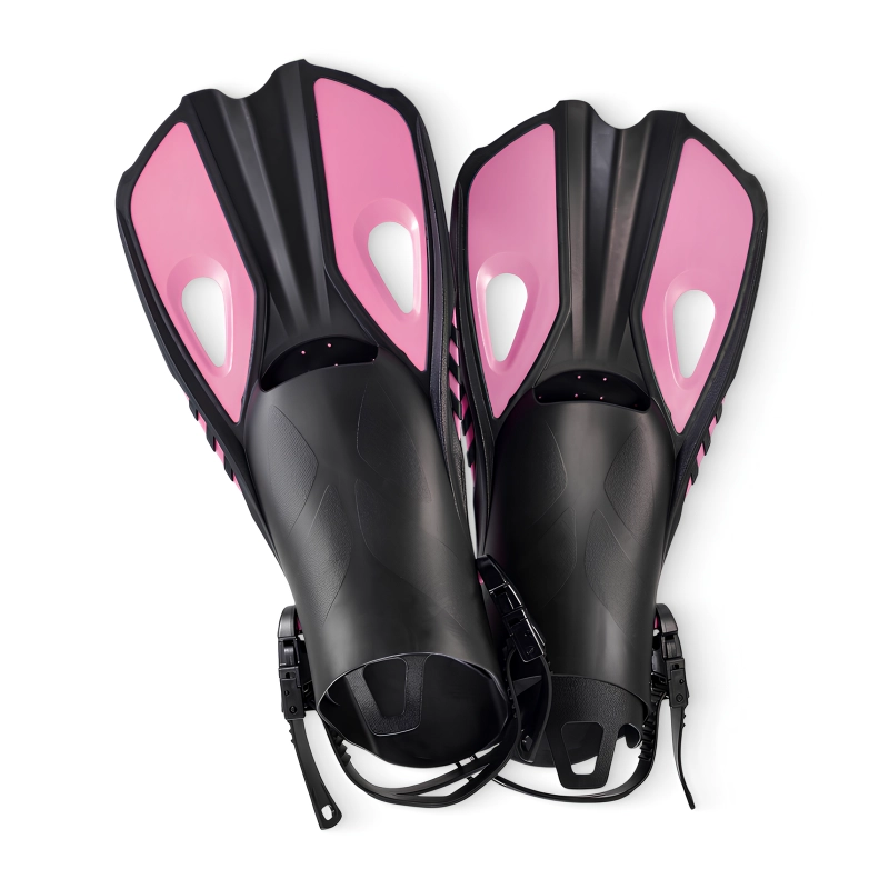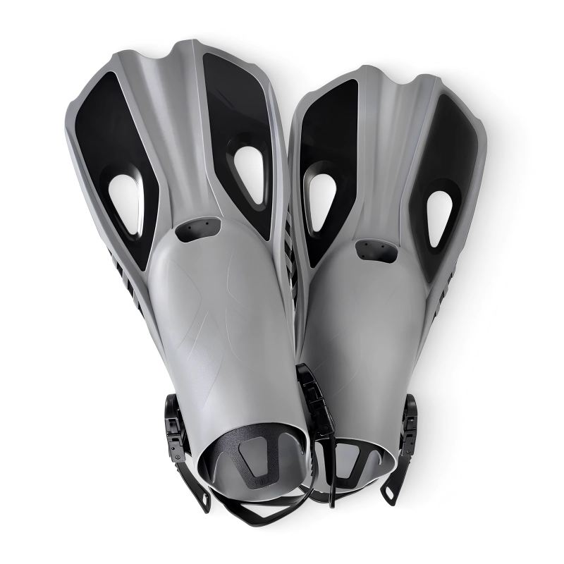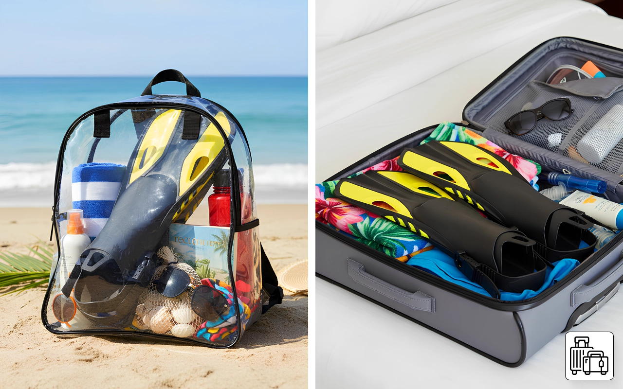 Leichte Flossen passen problemlos in jedes Gepäck oder jede Tasche. Perfekt für den Urlaub, Schwimmunterricht oder schnelle Besuche im Schwimmbad.