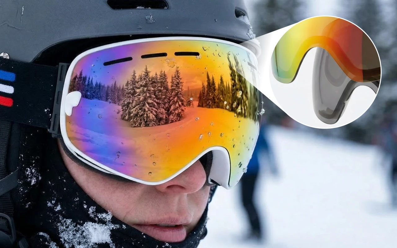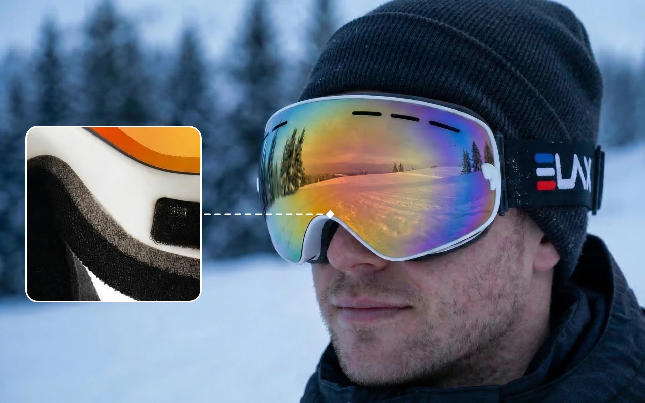 Spezielle Doppelschicht-Gläser verhindern den ganzen Tag über die Bildung von Beschlag. Ihre Augen bleiben geschützt, sodass Sie ununterbrochenen Spaß genießen können.