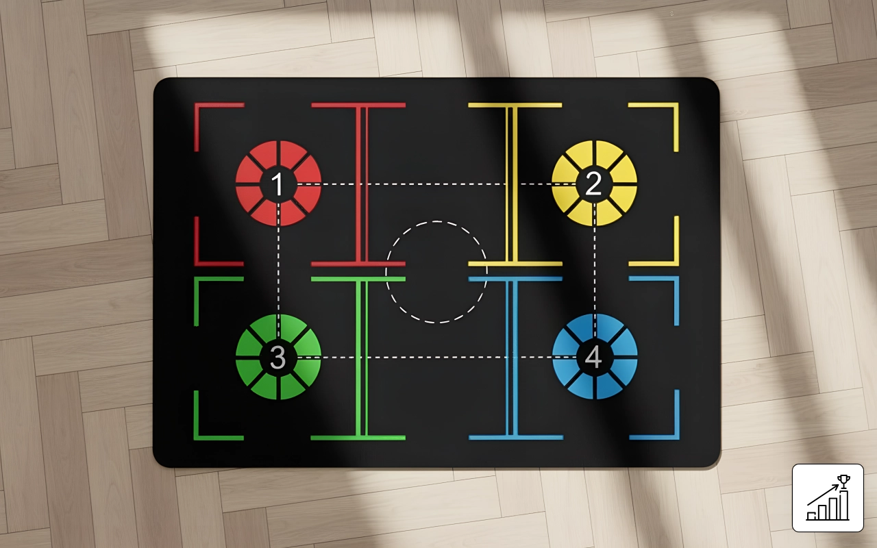 Die klaren Zonen der Threo-Matte helfen dir bei jedem Training, deine Fußarbeit zu leiten. Deine Fähigkeiten verbessern sich schneller, wenn du täglich gezielte Übungen durchführst.