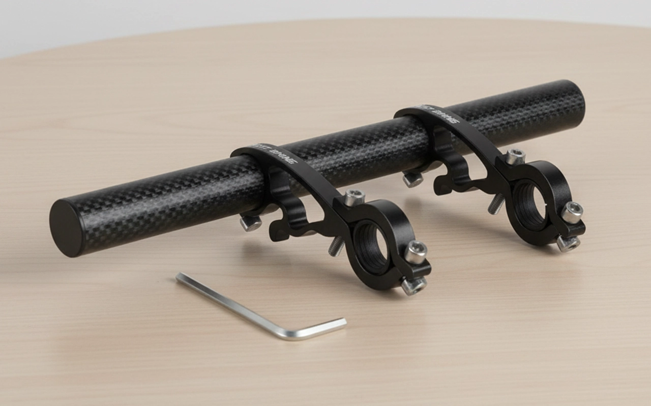 Unser Erweiterungsstück bietet Platz für Zubehör wie Lichter, GPS-Geräte und Handyhalterungen. Es hilft, den Lenker organisiert und übersichtlich zu halten.