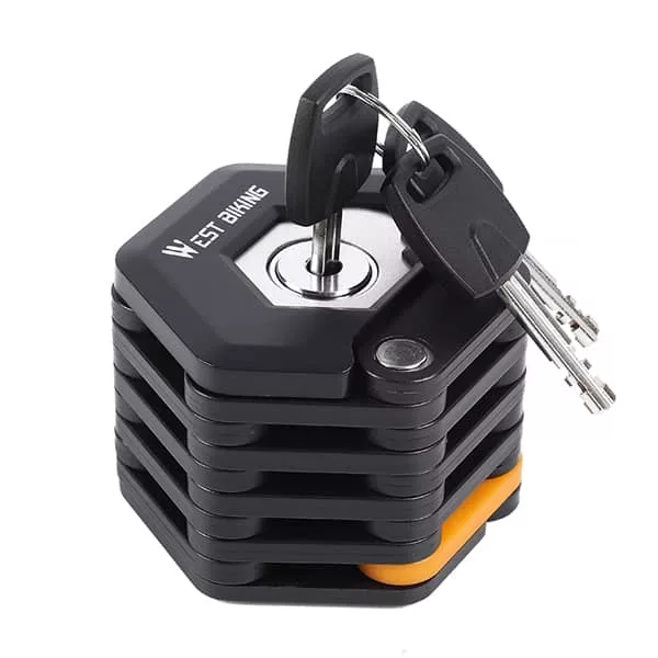 Dieses Schloss bietet soliden Schutz für mein Fahrrad. Ich liebe seine Haltbarkeit und die ordentliche Aufbewahrungsoption ist ein Bonus. Sehr zuverlässig!