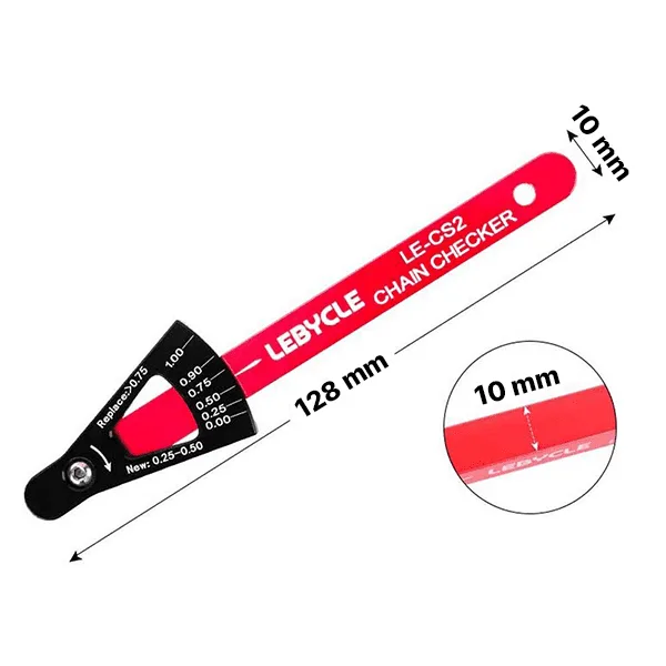 Der Threo Bicycle Wear Indicator misst präzise die Dehnung der Fahrradkette und verfügt über eine Verschleißanzeige, die schnell anzeigt, wann sie ausgetauscht werden muss. Unser kompaktes Werkzeug aus strapazierfähigem Material eignet sich für Rennräder und Mountainbikes und ist ein Muss für Radsportbegeisterte aller Klassen.