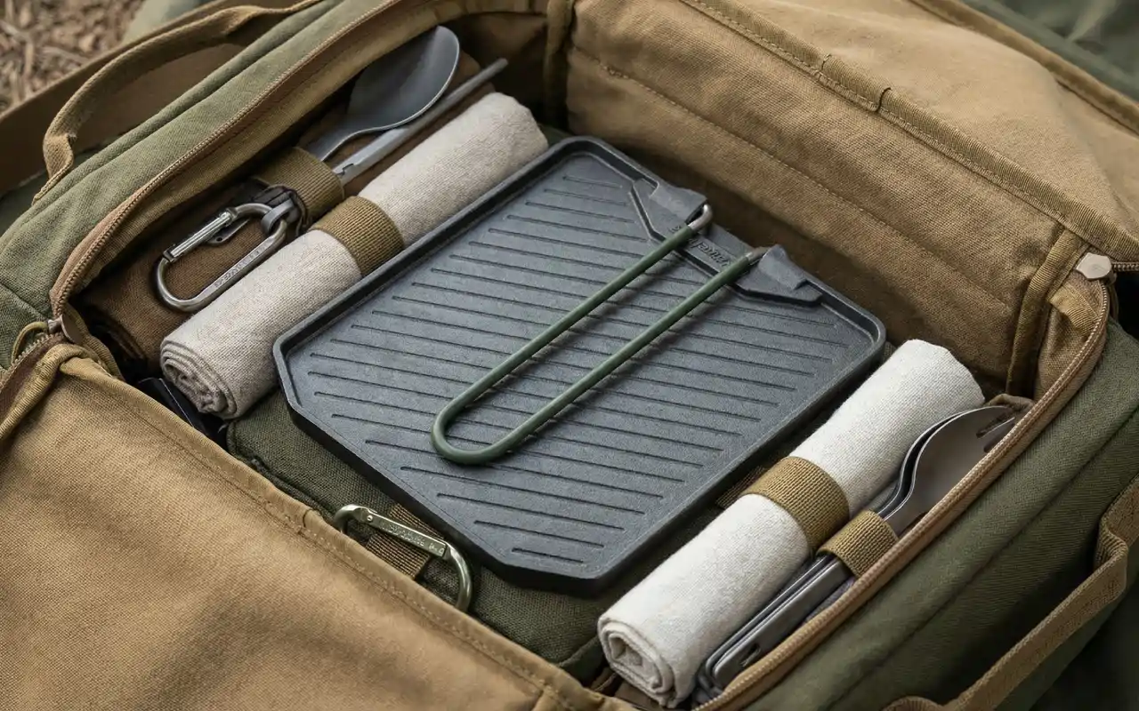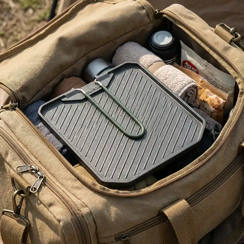 Ich habe sie für Kajaktouren gekauft. Sie passt in meinen Drybag, ist in Sekunden aufgeklappt und ich kann den Fisch direkt am Fluss braten, ohne dass etwas an der Oberfläche haften bleibt.