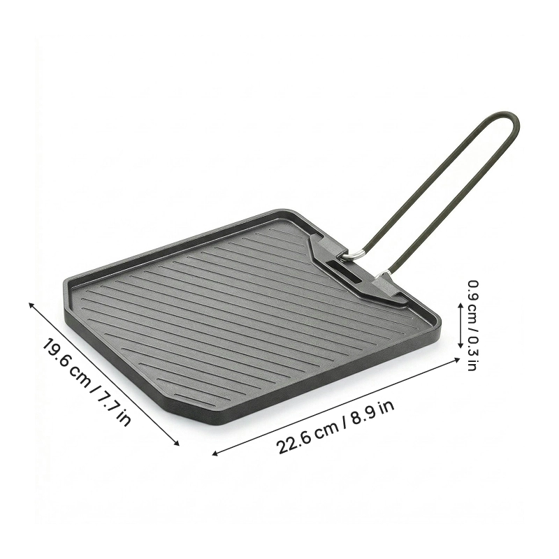 Der klappbare Griff spart Platz in Ihrer Campingausrüstung. Pfanne für jedes Outdoor-Abenteuer leicht tragen und verstauen.