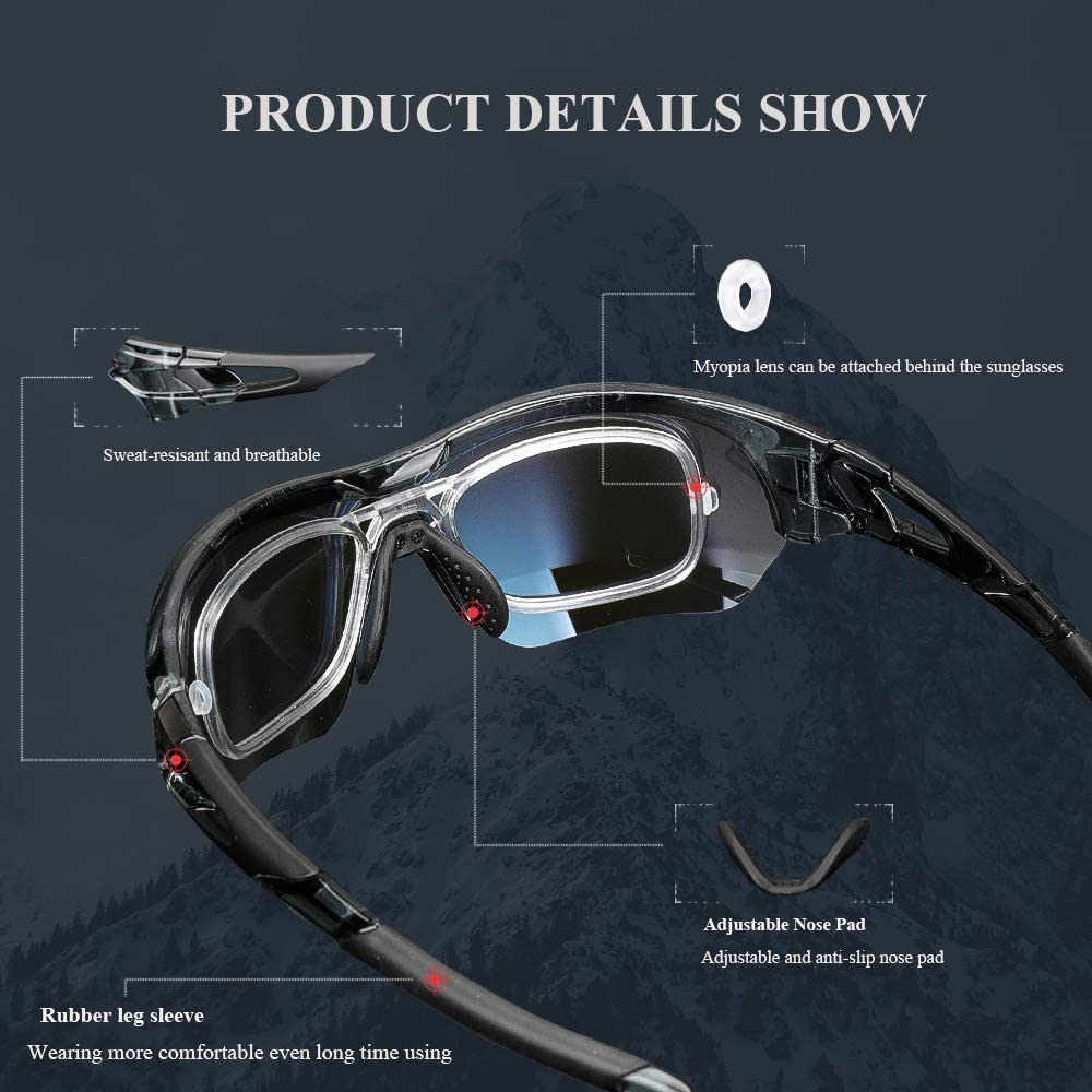 Die Brille wird mit 5 leicht austauschbaren Gläsern geliefert, um den Anforderungen jeder Situation gerecht zu werden. Wählen Sie einfach eines aus, dass Ihnen am besten passt. Egal, ob Sie im Schatten, in der prallen Sonne oder im Wald Fahrrad fahren – Sie haben eine hervorragende Sicht auf die Straße!