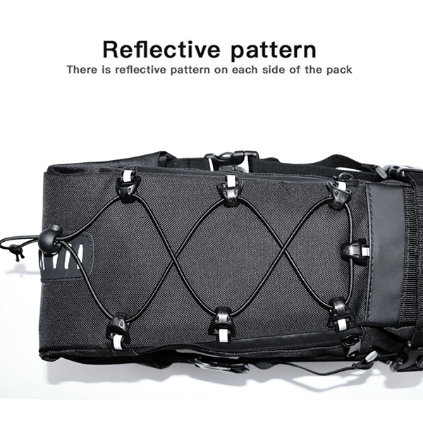 Das verbesserte Sattelbefestigungssystem zusammen mit den Kompressionsriemen verringert den Pendel-Effekt. So kann diese Fahrradtasche das Wippen reduzieren und eine bequeme Fahrt für lange Kilometer bieten. Außerdem verwendet diese Satteltasche eine bequeme Methode der Befestigung. Der Sattelstützengurt ist ein kräftiger Klettverschluss mit zwei oberen Riemen. Einer der Riemen wird um die Sattelstütze herum befestigt, und zwei der Riemen werden durch die Sattelschienen geführt. So lassen sich die letzten beiden leicht durch Ziehen am Ende festziehen.