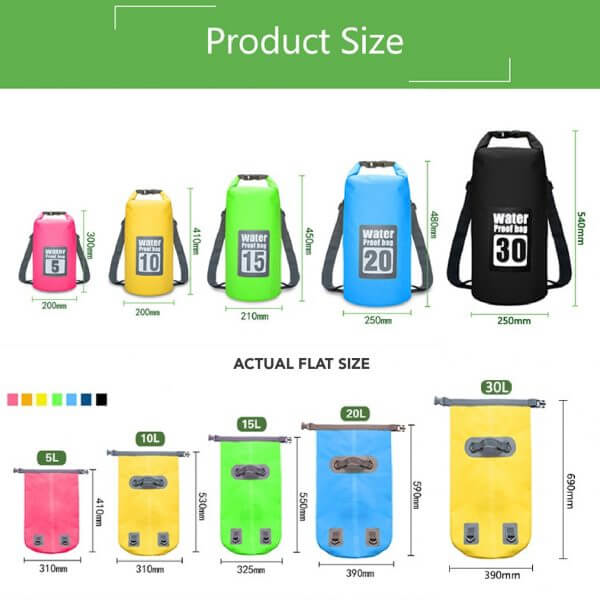 In den Größen 5, 10, 15, 20 und 30 Liter können Sie Ihre gesamte Ausrüstung, von Rettungsschichten bis hin zu Mobiltelefonen und Kameras, problemlos organisieren und schützen. Sie ist die perfekte leichte Tasche für Rafting, Kajakfahren, Strand, Camping, Wandern, Tauchen und alle anderen Aktivitäten, bei denen Sie Ihre Wertsachen vor Wasser schützen möchten.