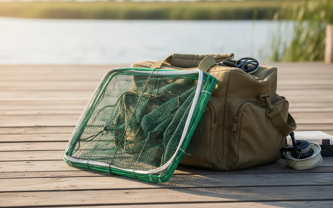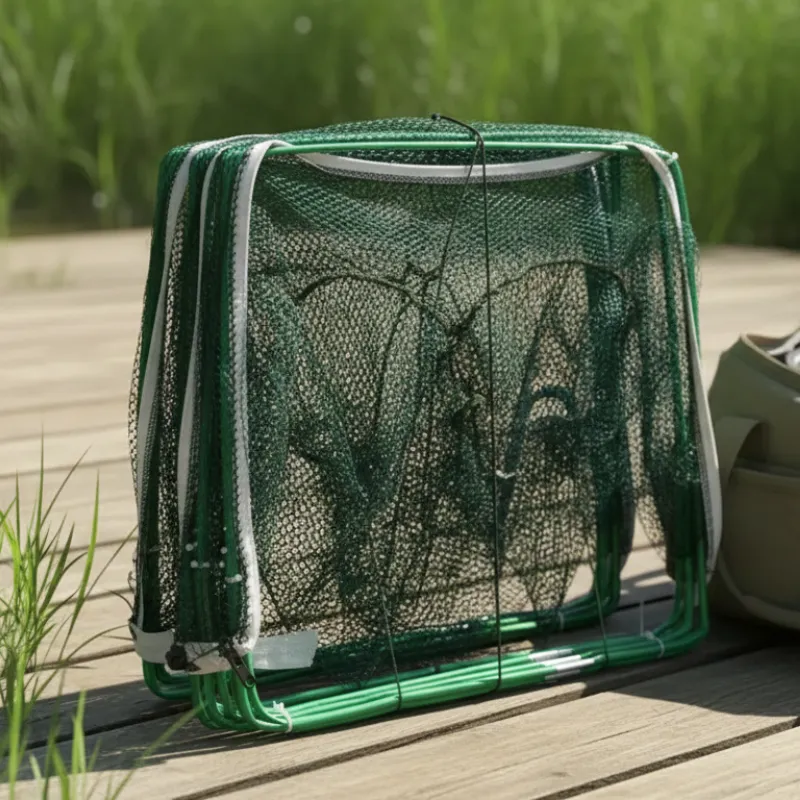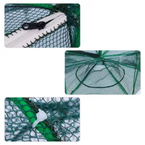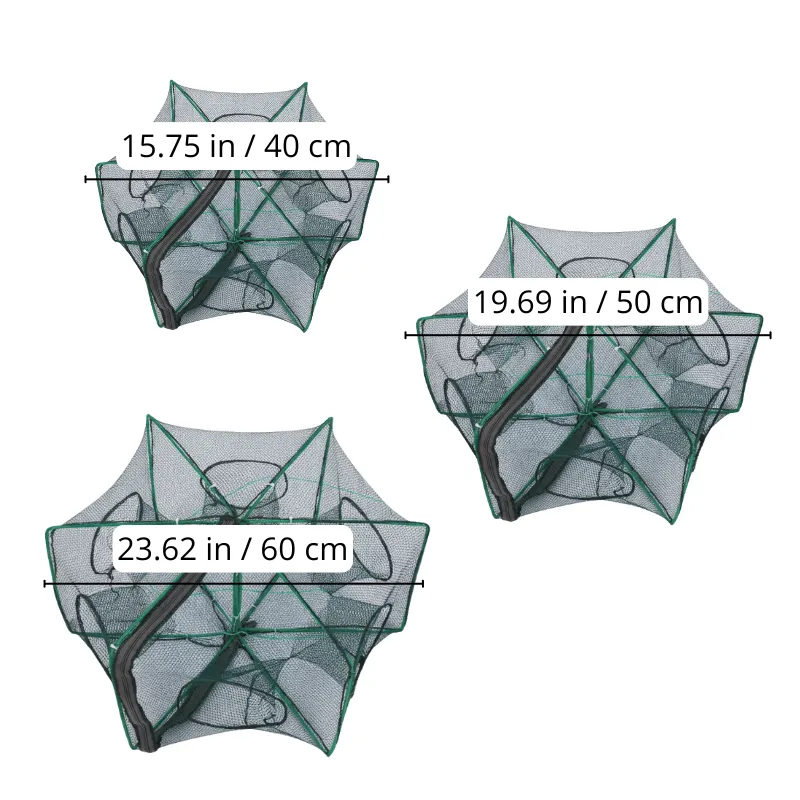 Dank seines akkordeonartigen Mechanismus kann unsere Fischfalle auf eine kleinere Größe zusammengefaltet werden. Tragen Sie sie mühelos in Ihrer Ausrüstungstasche oder verstauen Sie sie, wenn Sie sie nicht nutzen.