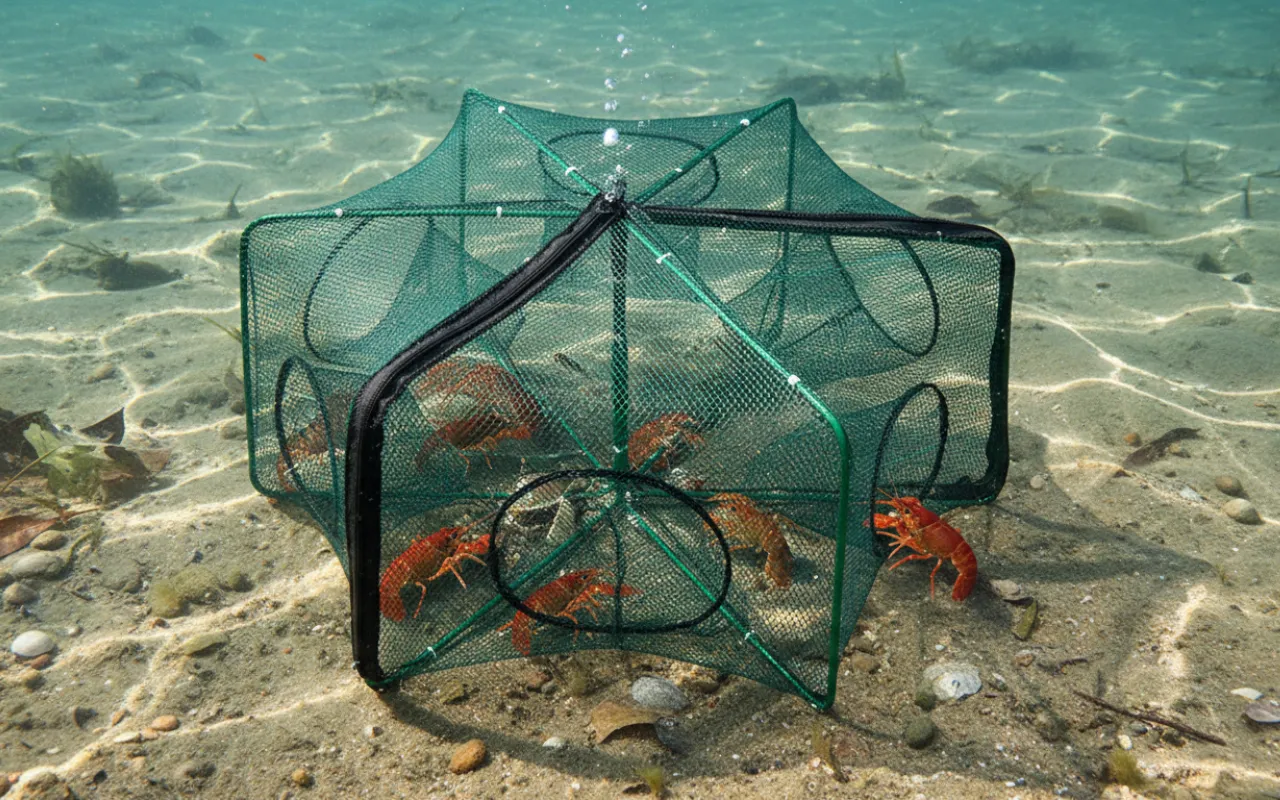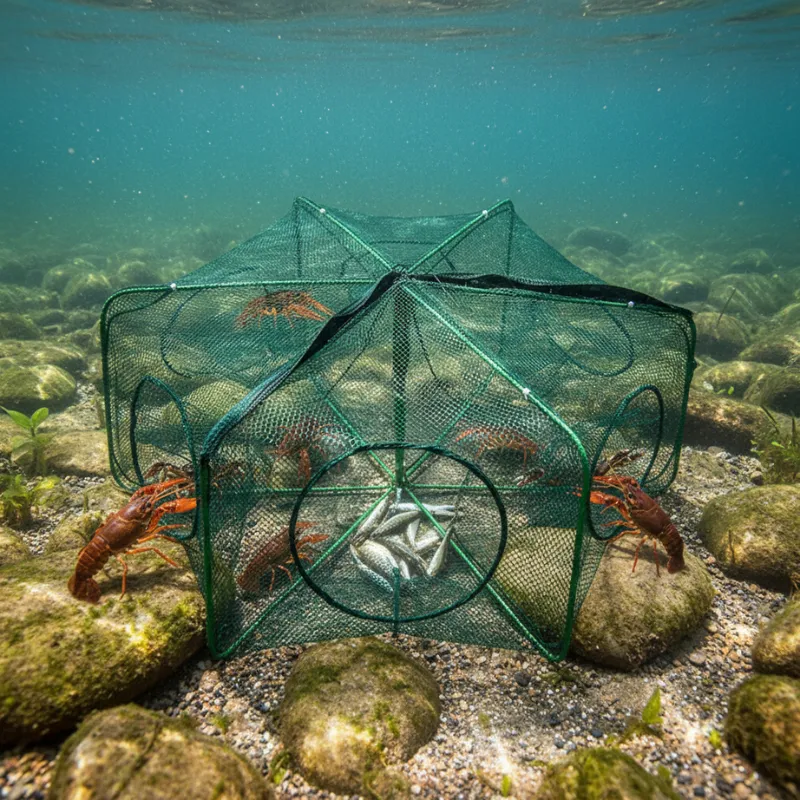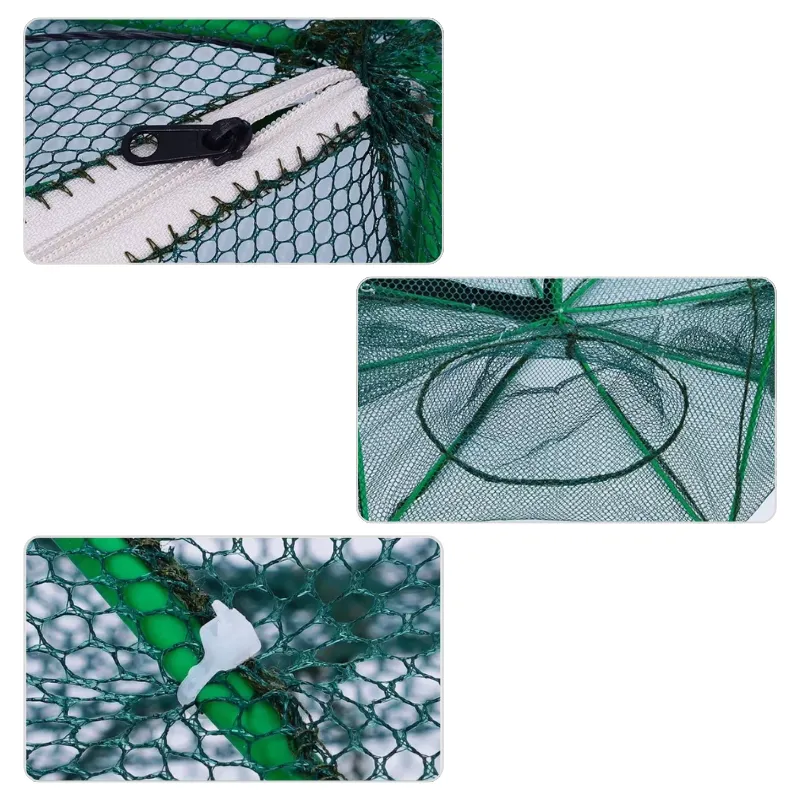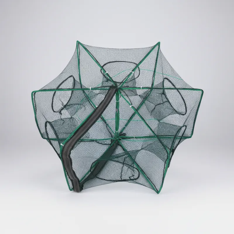 Unsere Köderfalle verfügt über eine 360-Grad-Konstruktion. Sie hat mehrere Eingänge, wodurch Unterwasserlebewesen leicht aus verschiedenen Richtungen eindringen können. Ein solches Layout stellt sicher, dass mehr Meeresbewohner in die Falle geraten, was Ihre Fangrate erheblich erhöht.
