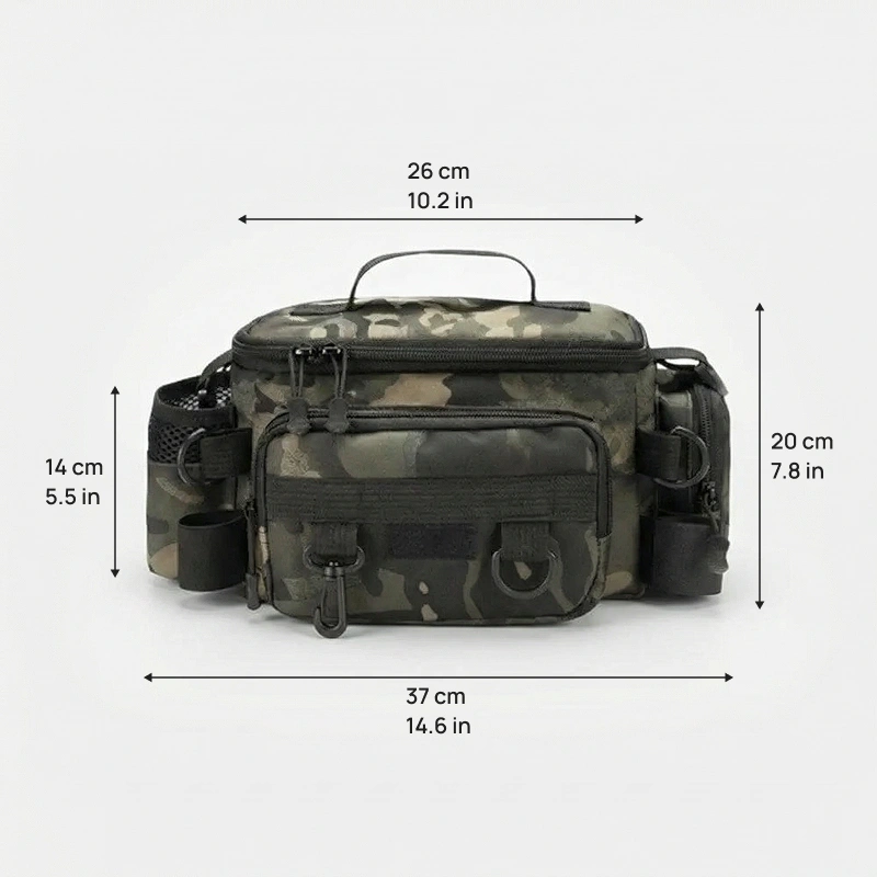 Mehrere Taschen ermöglichen ein schnelles Auffinden aller Angelwerkzeuge. Rollen, Köder oder Schnüre sind sofort griffbereit, ohne die Tasche auszuleeren.