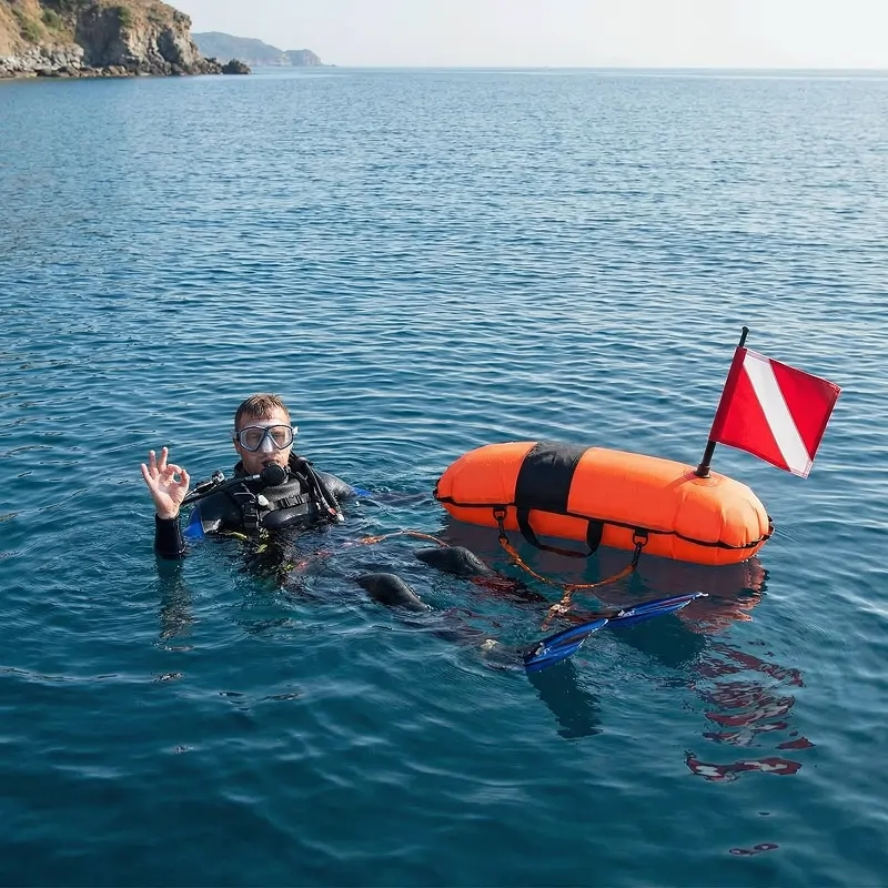Habe diese Boje zu einem Kajak- und Tauchwochenende mitgenommen. Lässt sich klein verpacken, schnell aufpumpen, und die Gurte hielten meine kleine Drybag, während ich zurück zum Ufer geschwommen bin.