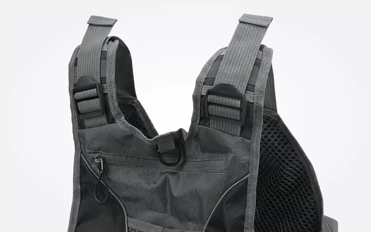 Atmungsaktives Netzgewebe und gepolsterte Träger verringern die Belastung während langer Sessions. Die verstellbare Passform sorgt dafür, dass beim Gehen nichts drückt oder scheuert.