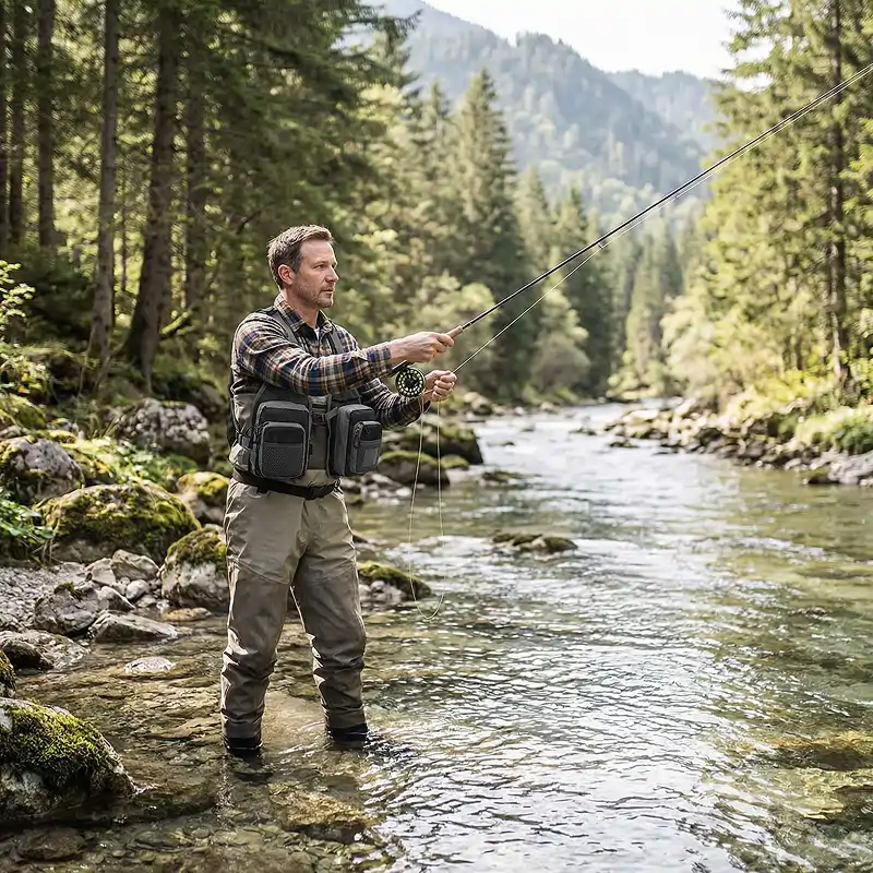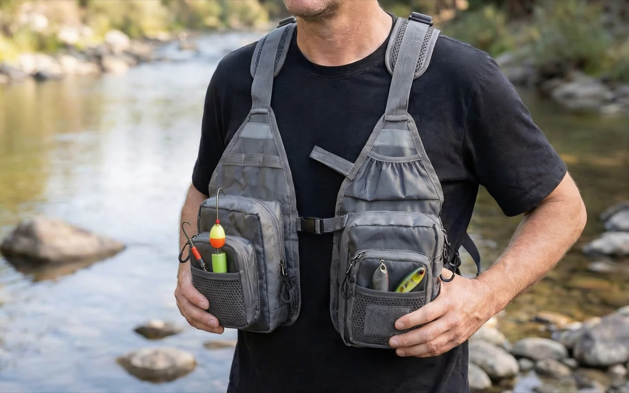 Ich habe diese Weste für Wochenendausflüge am Fluss gekauft. Die Taschen halten Fliegen, Vorfach und Snacks organisiert, und das Netzrückenteil bleibt an Sommernachmittagen angenehm kühl.