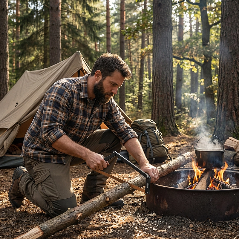 Holz schnell schneiden, immer bereit für draußen
