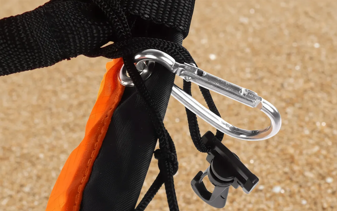 Öffnen und befestigen Sie das Threo-Kajaksegel in Sekunden mithilfe robuster Karabiner. Keine Werkzeuge oder komplizierten Anleitungen halten Sie am Ufer auf.