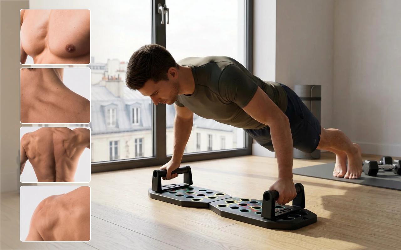 Ich wollte etwas Einfaches für das Training zu Hause. Dieses Board hat mir neue Liegestütz-Winkel gezeigt, und mein oberer Rücken fühlt sich nicht mehr schwach oder steif an.