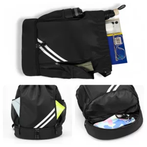 Diese praktische Funktion hilft Ihnen, Ihre Tasche nach einem schweißtreibenden Spiel sauber zu halten. Es fördert die Hygiene und verhindert, dass sich Gerüche ausbreiten.