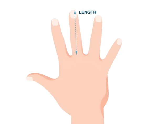 - 1. Messen Sie vom unteren Ende Ihrer Handfläche bis zur Spitze Ihres Mittelfingers.