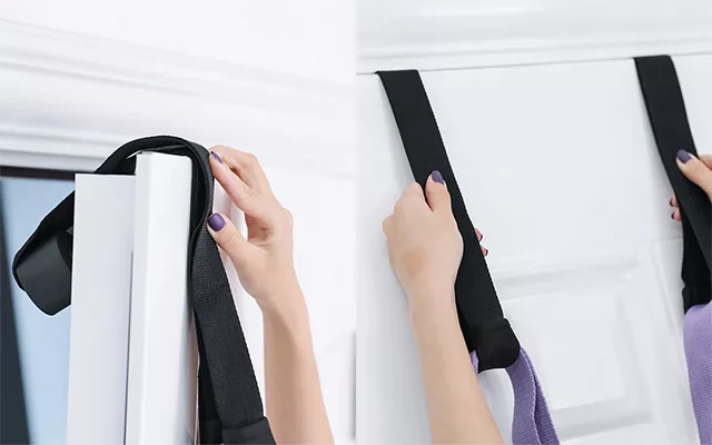 Dieses Yoga-Seil lässt sich problemlos an den meisten Standardrahmen ohne Werkzeug installieren. Mache aus jedem Raum einen Trainingsbereich.