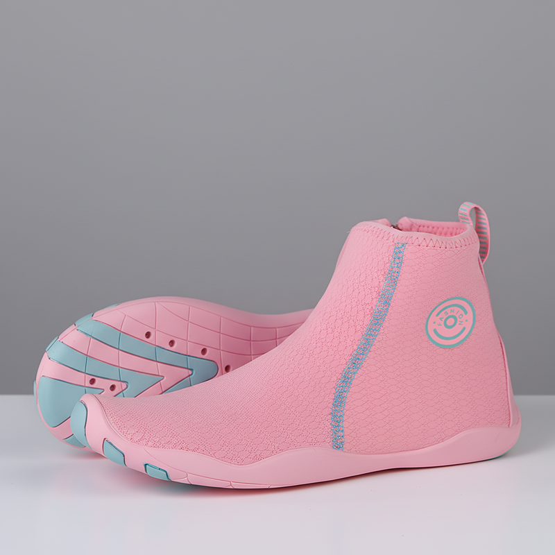 Hohe Knöchel schützen vor scharfen Steinen und heißem Sand. Robuste Sohlen verringern das Ausrutschen und sorgen für festen Halt auf nassem oder unebenem Untergrund.