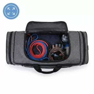 Verstauen Sie alle Trainingsutensilien inklusive Handtüchern in einer geräumigen Sporttasche. Nie wieder Platzmangel.