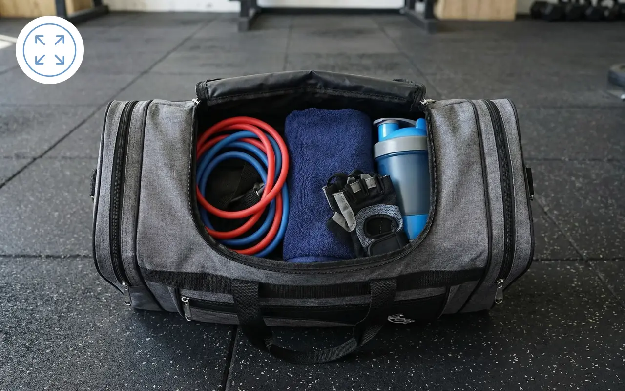 Diese Sporttasche passt alles, was ich für mein tägliches Training brauche, einschließlich Handtuch, Schuhe und Wechselkleidung, problemlos hinein.