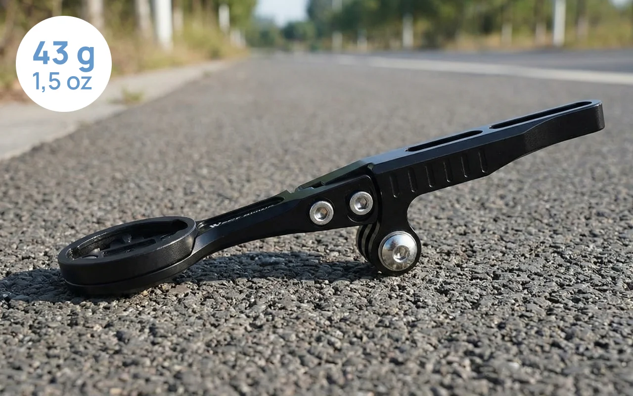 Ich hatte Bedenken wegen des zusätzlichen Gewichts an meinem Fahrrad, aber diese Halterung wiegt fast nichts! Trotzdem stark genug, um alles sicher zu halten.