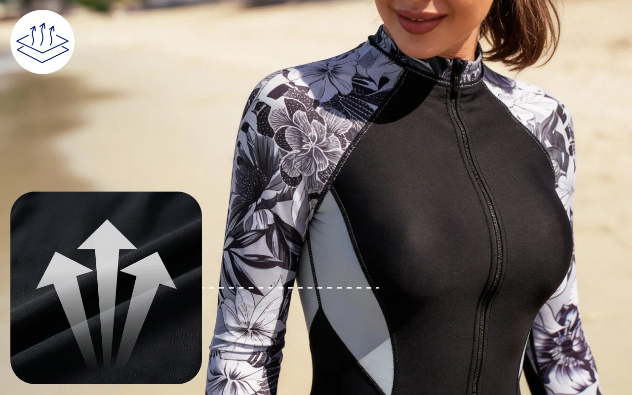 Das Material trocknet nach jedem Schwimm- oder Tauchgang schnell. Sie können sich wieder entspannen oder spielen, ohne sich kalt oder beschwert zu fühlen.