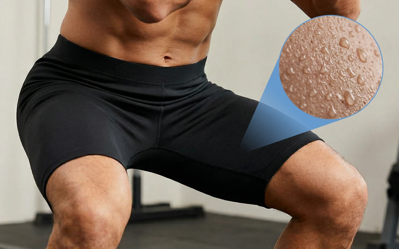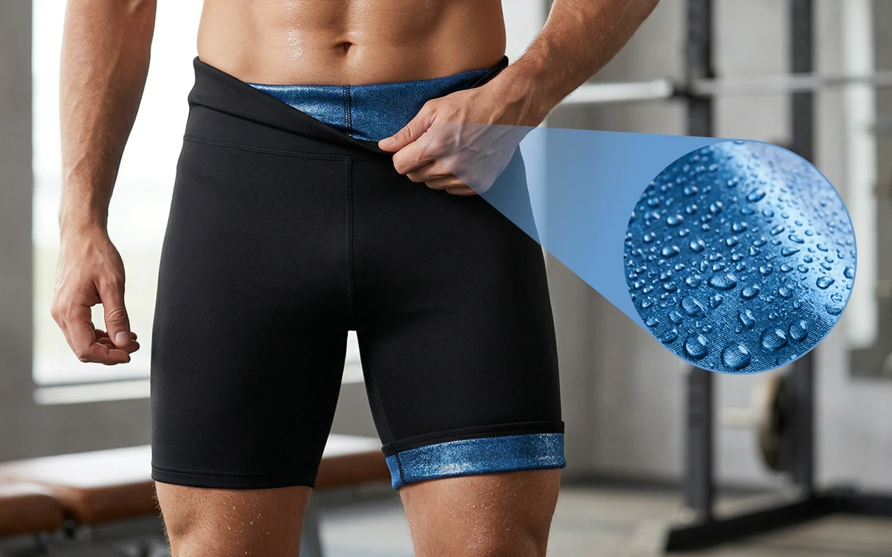 Spezieller Stoff erhöht die Wärmespeicherung, sodass Sie mehr schwitzen. Dies hilft Ihrem Körper, Wassergewicht zu verlieren und schnell schlanker auszusehen.