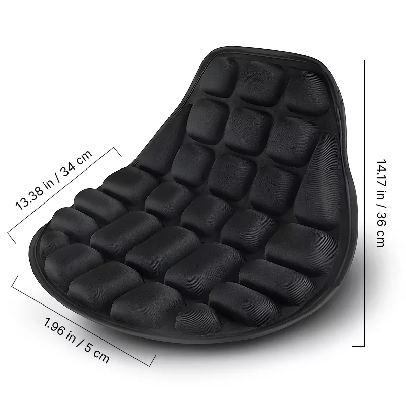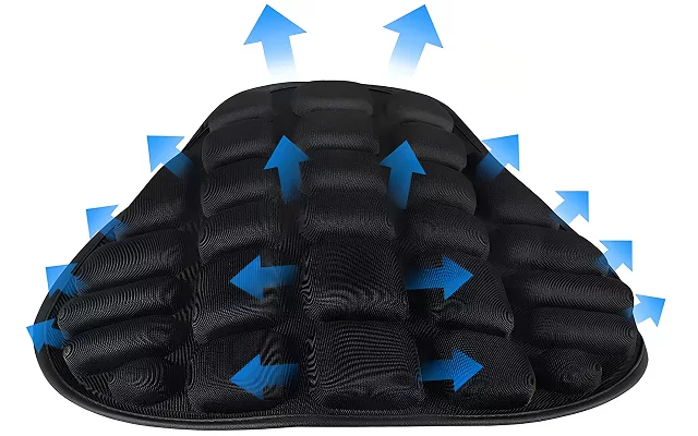 Unser Motorradsitzkissen bietet hervorragende Stoßdämpfung und minimiert die Auswirkungen von Straßenunebenheiten. Es verteilt Ihr Gewicht gleichmäßig und reduziert die Belastung auf Hüften und unteren Rücken. Es behält seine Form auch nach langen Fahrten und häufigem Gebrauch.