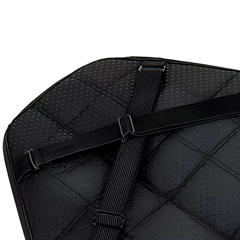Doppelte Kreuzgurte und ein gummierter Boden halten das Kissen an Ort und Stelle. Es verrutscht nicht bei scharfen Kurven oder auf unebenem Gelände. Genießen Sie ruhigere Fahrten ohne ständiges Nachjustieren.