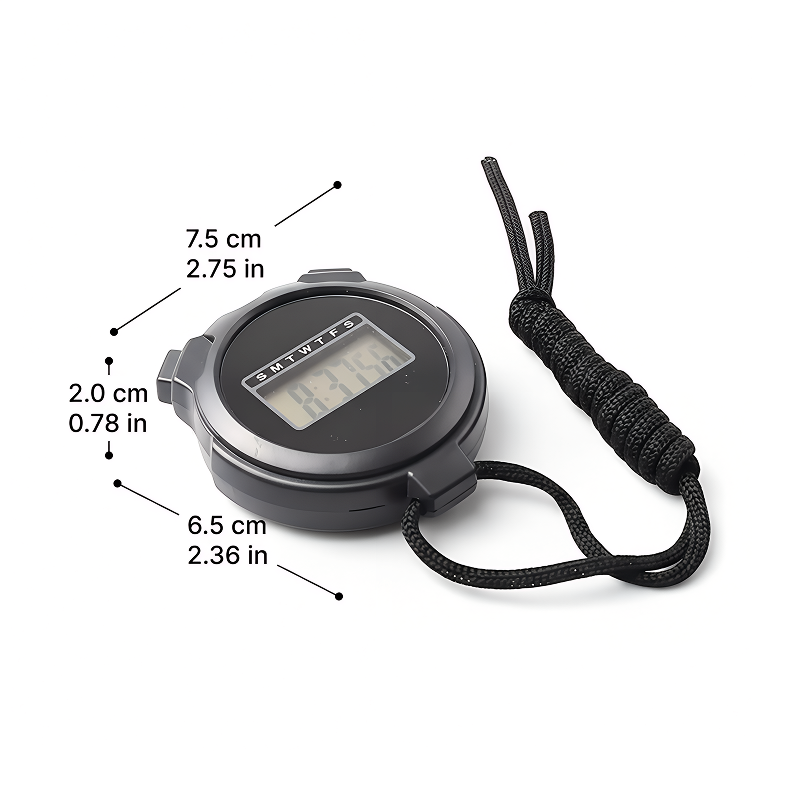 Nehmen Sie die Threo Multifunktions-Stoppuhr überall in Ihrer Tasche oder im Beutel mit. Das leichte Design macht sie bei Veranstaltungen oder beim Training immer griffbereit.