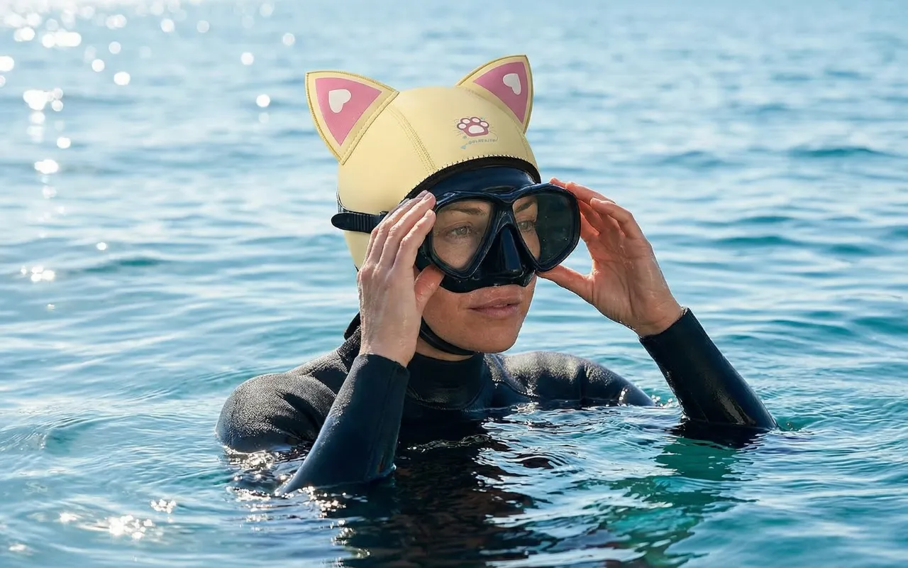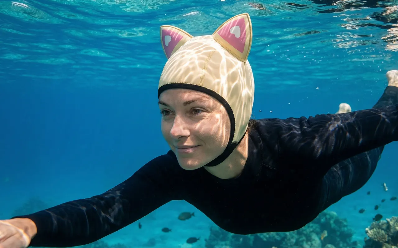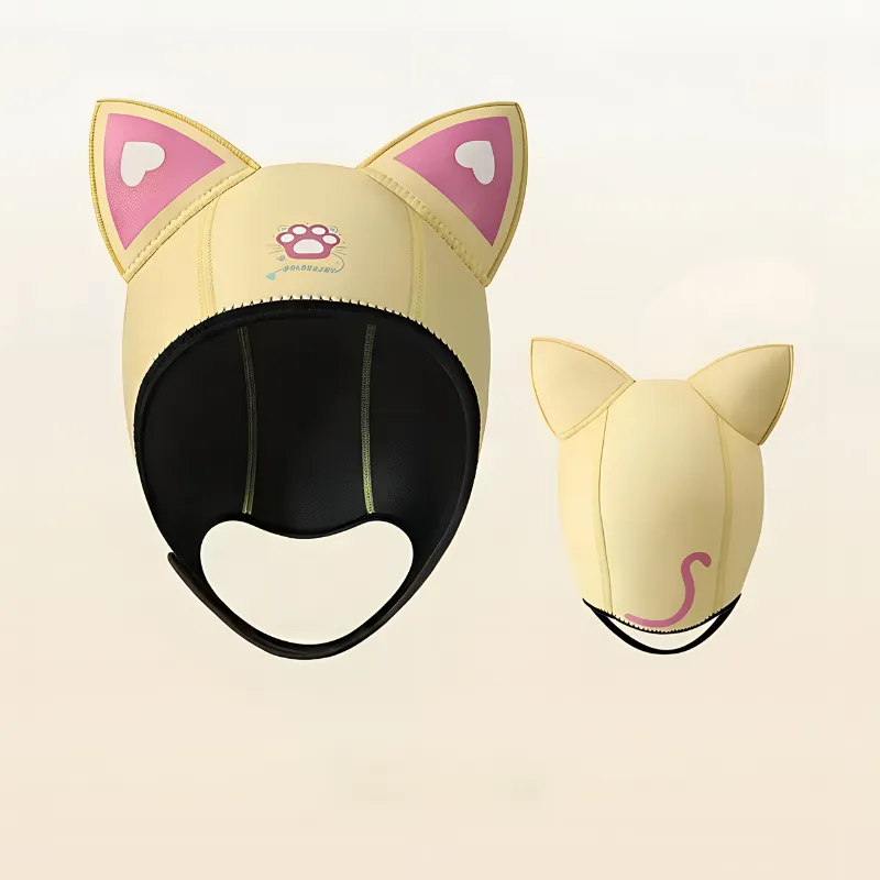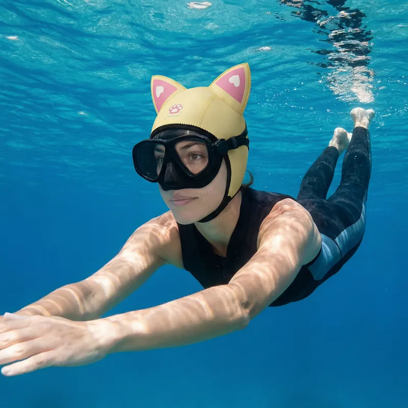 Kein zerzaustes Haar oder kalter Kopf mehr nach Tauchstunden. Meine Schwester will auch eine, weil die Katzenohren super cool aussehen!