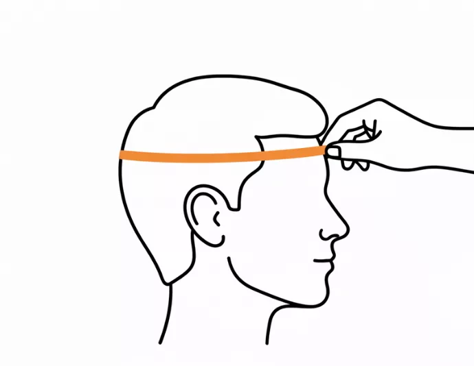 - 1. Legen Sie das Maßband um den breitesten Teil des Kopfes, direkt über den Augenbrauen und Ohren.