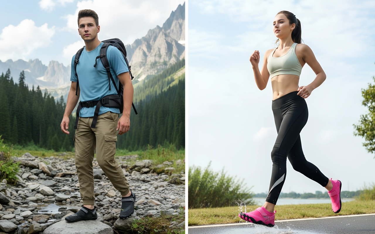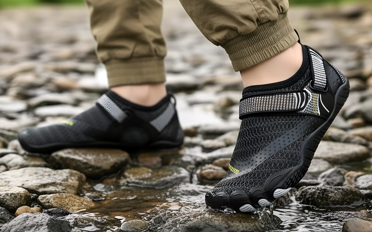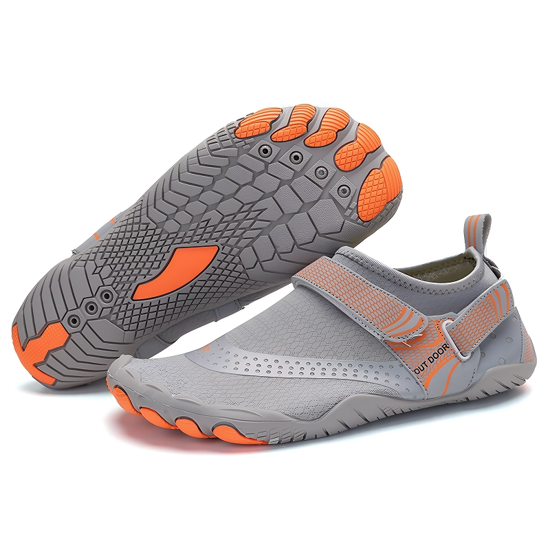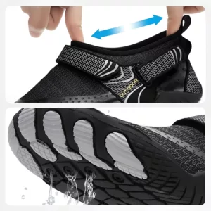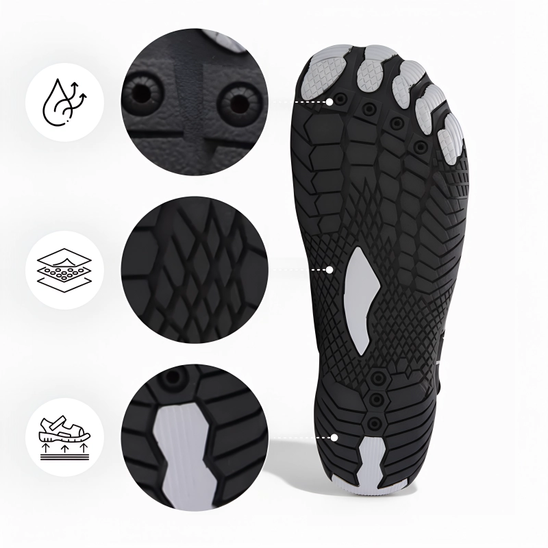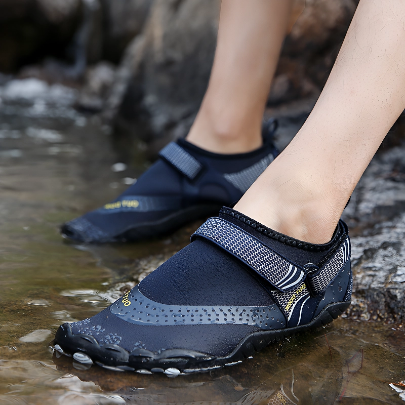 Speziell entwickelte Sohlen verhindern unerwünschtes Ausrutschen oder Stürze auf nassem Untergrund. Gehen Sie sicher, schwimmen Sie oder erkunden Sie felsige Wege.