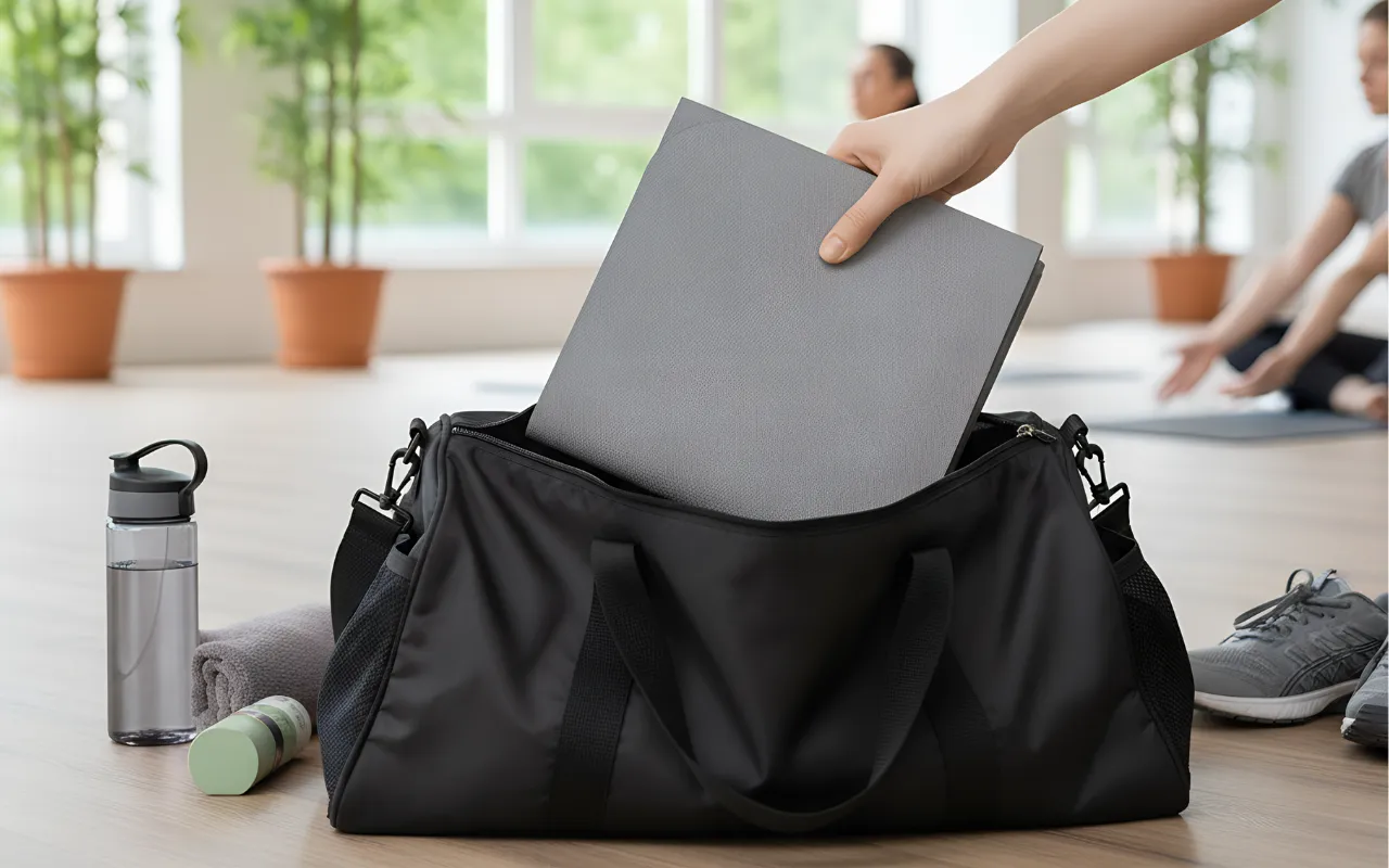 Schnell zusammenfalten und zu jedem Kurs oder an einen Outdoor-Platz mitnehmen. Ohne Aufwand oder Platzbedarf in Taschen, Schubladen oder Schränken verstauen.