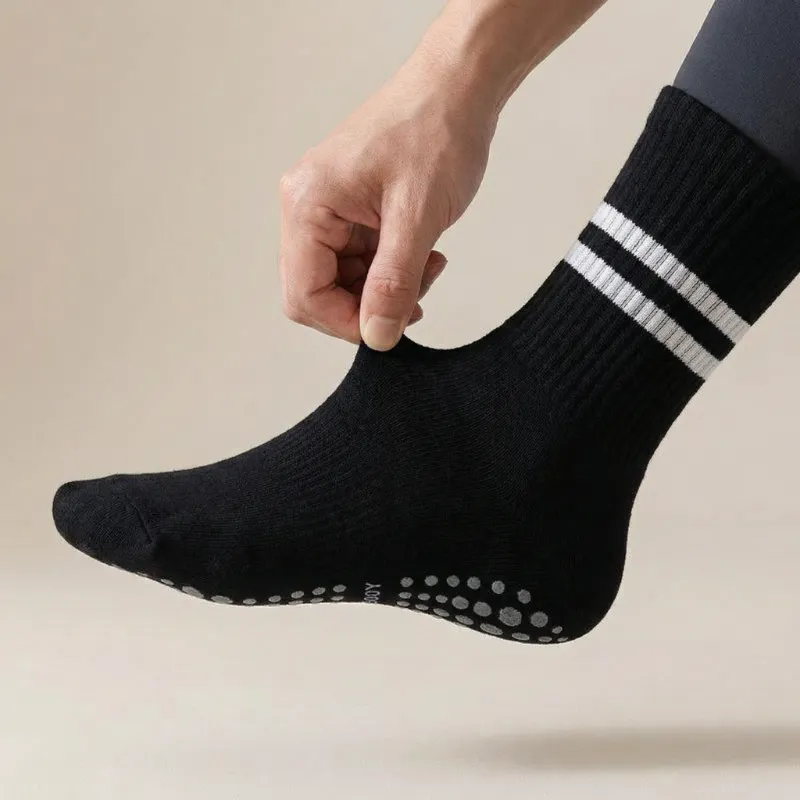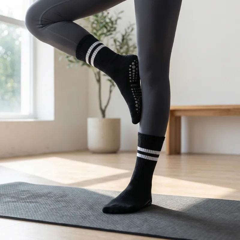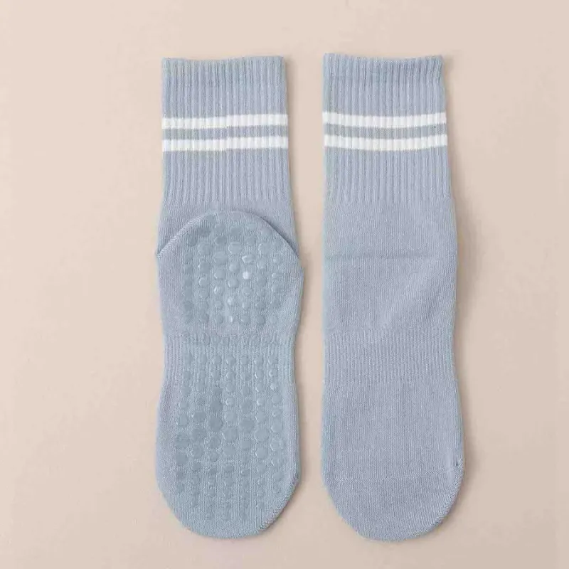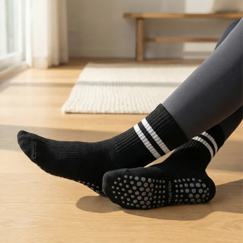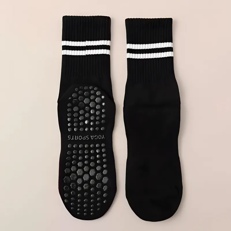 Silikonpunkte bedecken die Unterseite und sorgen für maximalen Halt. Jeder Schritt bleibt stabil, egal ob beim Yoga- oder Pilates-Training.