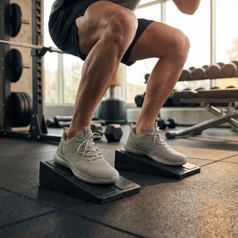 Meine Kniebeugen fühlen sich mit diesem Keil viel flüssiger und kontrollierter an. Er verrutscht bei den Sätzen nicht und meine Gelenke fühlen sich geschützt.
