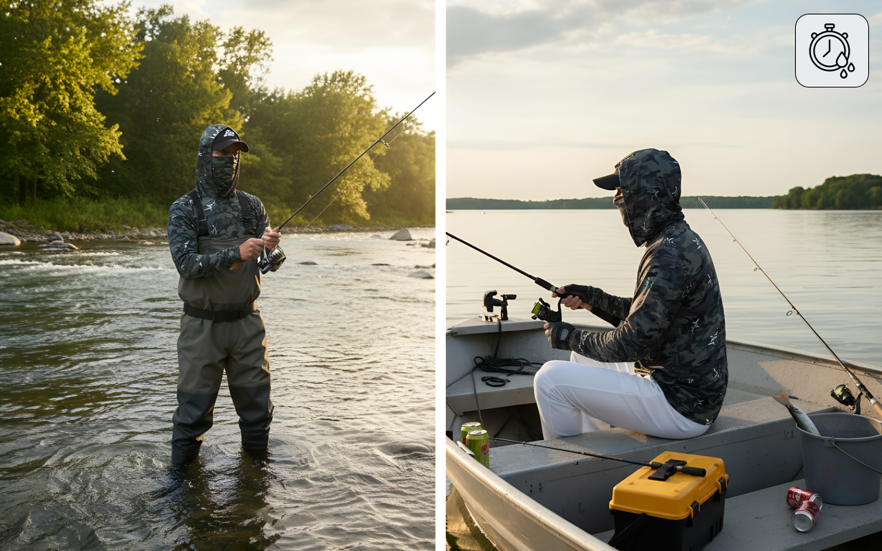 Ich habe ihn letztes Wochenende beim Angeln getragen und war überrascht, wie weich er sich anfühlt. Ich habe nicht einmal überhitzt, obwohl die Sonne den ganzen Tag geschienen hat.