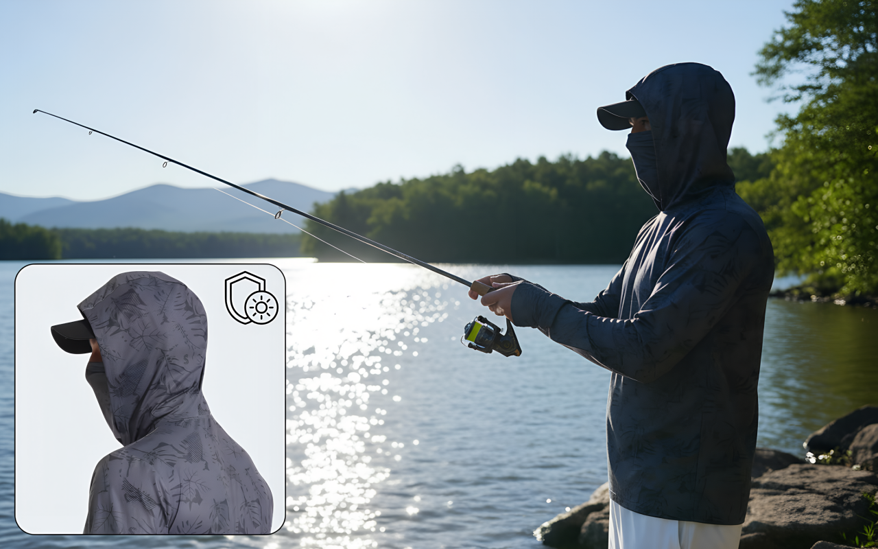 Gesichtsmaske und Kapuze bieten zuverlässigen UV-Schutz. Genießen Sie lange Stunden im Freien und reduzieren Sie das Risiko eines Sonnenbrands.