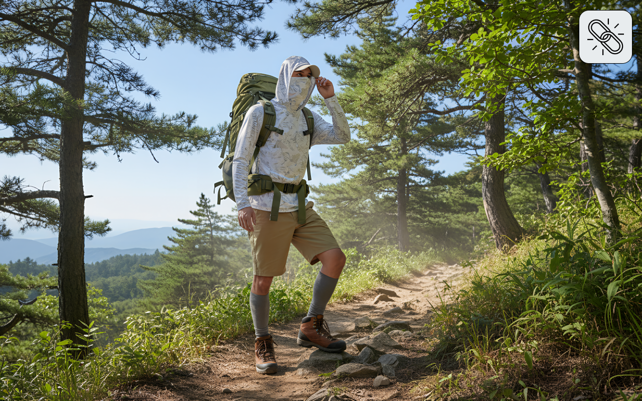 Dieser Hoodie ist mein neuer Camping-Begleiter. Die Kapuze und die Maske blocken die Sonne perfekt, sodass ich länger erkunden kann, ohne dass meine Haut schmerzt.