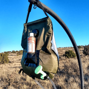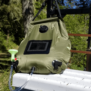 Ich kann kaum glauben, wie warm das Wasser in nur wenigen Stunden unter der Sonne wird. Es ist auch leicht, was es mir leicht macht, es zu tragen. Ich liebe es, diesen Beutel bei Gruppenwanderungen mitzunehmen; wir haben alle genug Zeit, uns einzuschäumen und abzuspülen.