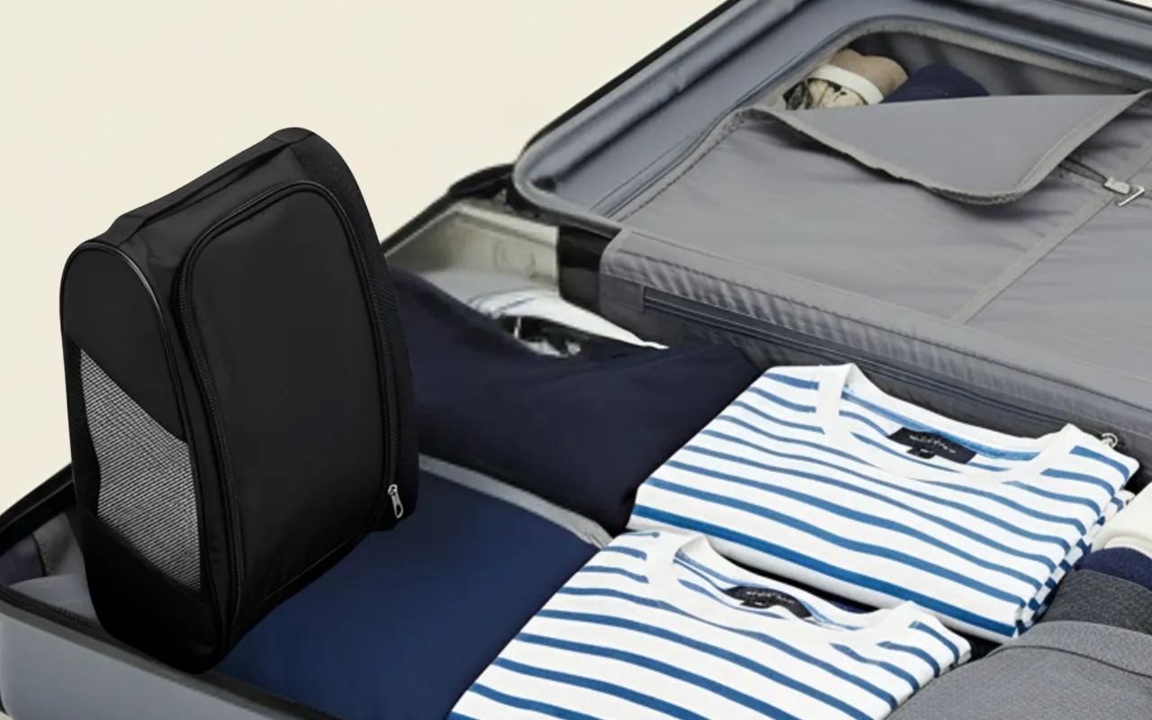 Super leicht und beide meine Schuhe passen rein. Das Tragen ist einfach und wenn ich sie öffne, riecht meine Kleidung im Koffer endlich nicht mehr nach Füßen!